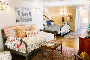 The Anthony suite is priced for two guests to share the king bed. If you are booking for two guests, but would like the twin bed made up for the 2nd guest - a $25.00 fee will apply to your reservation. Please make this note when booking your reservation and it will be added to the reservation. We must know 24 hours in advance to add a twin bed in any situation/combination and it is always best to book it on the original reservation.